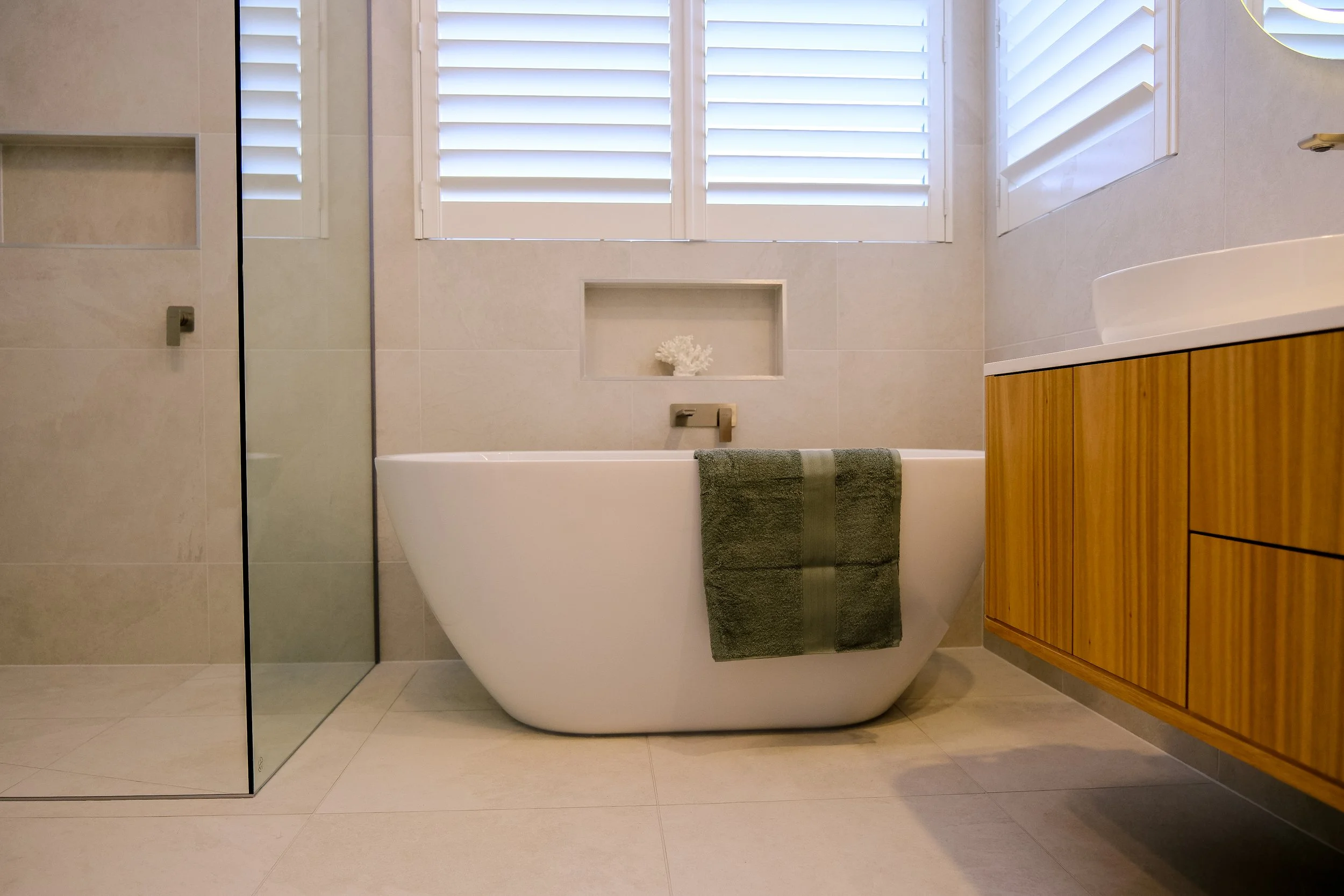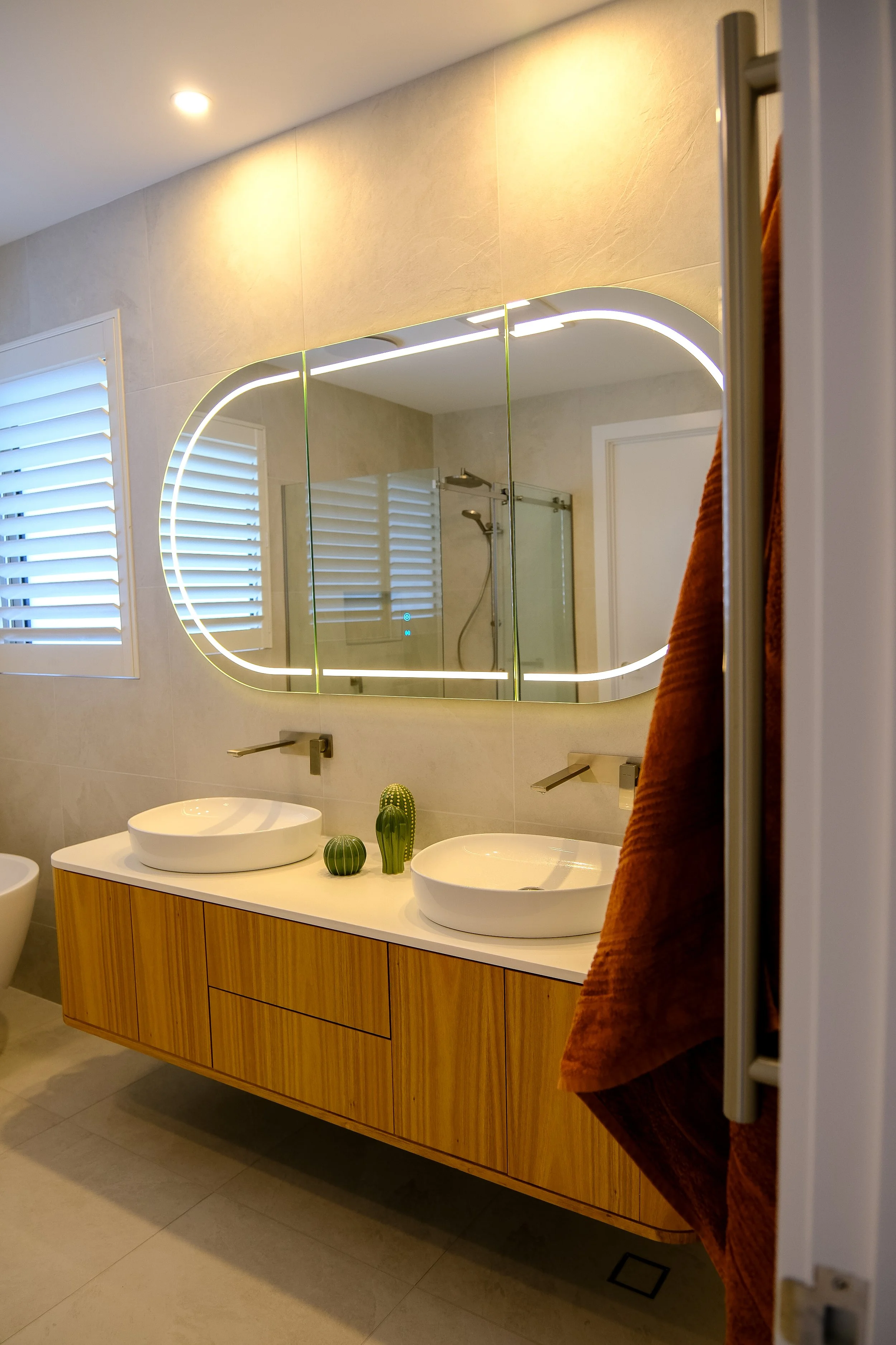 This Dromana job consisted of a full renovation of the house bathroom, ensuite, laundry and kitchen. All completed from rip out to fit off by Boulux Bathrooms.